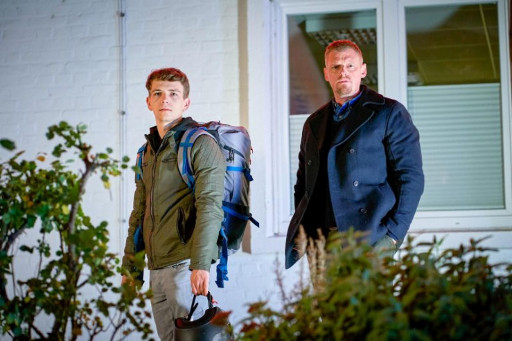Milo (Elias Kaßner, l.) und Matthias Fink (Martin Gruber, r.) beobachten etwas.