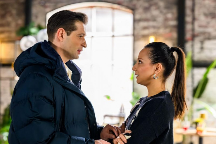ACHTUNG SPERRFRIST! Die Veröffentlichung dieses Motives ist für alle ONLINE-MEDIEN (außer Programm-Presse) erst ab dem 05.04.2026 frei. Joana (Josephine Martz, hinten) ist kalt erwischt, als Deniz (Igor Dolgatschew, l.) ihr droht. Rechts Kilian (Marc Dumitru) +++ Die Verwendung des sendungsbezogenen Materials ist nur mit dem Hinweis und Verlinkung auf RTL+ gestattet. +++