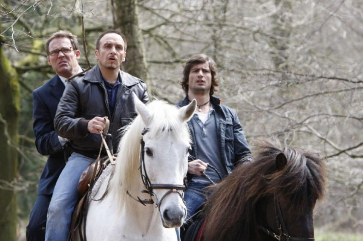 Der Konvoi mit dem Kronzeugen Flensmann wird aus der Luft angegriffen. Schaffen es Ben (Tom Beck, l.) und Semir (Erdogan Atalay, r.), Flensmann (Christian Tramitz) noch rechtzeitig in Sicherheit zu bringen? +++ Die Verwendung des sendungsbezogenen Materials ist nur mit dem Hinweis und Verlinkung auf RTL+ gestattet. +++