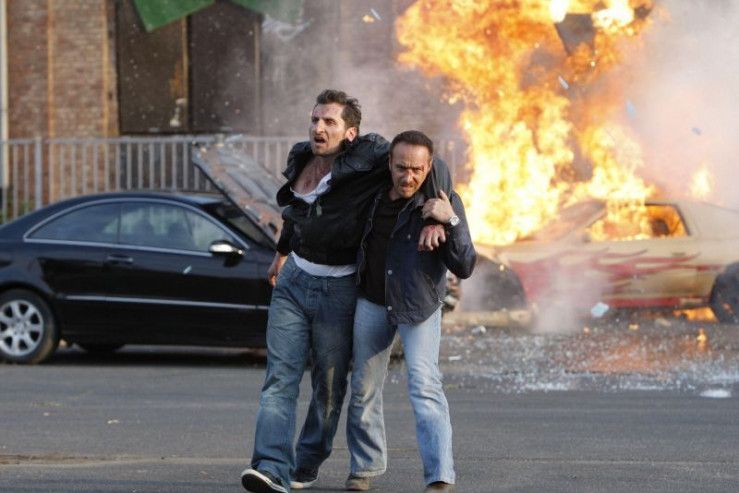 Semir (Erdogan Atalay, re.) kann den verletzten Tayfun (Tim Seyfi) in letzter Sekunde vor dem explodierenden Wagen retten...