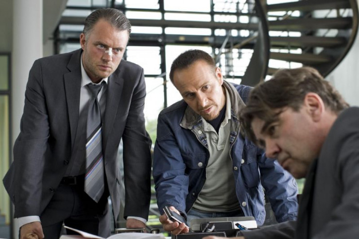 Eine Leiche wird im Rhein gefunden. Bohm (André Röhner) will den Fall übernehmen, doch die Staatsanwältin spricht ihn Semir (Erdogan Atalay, 2.v.l.) und Ben (Tom Beck, M.) zu.