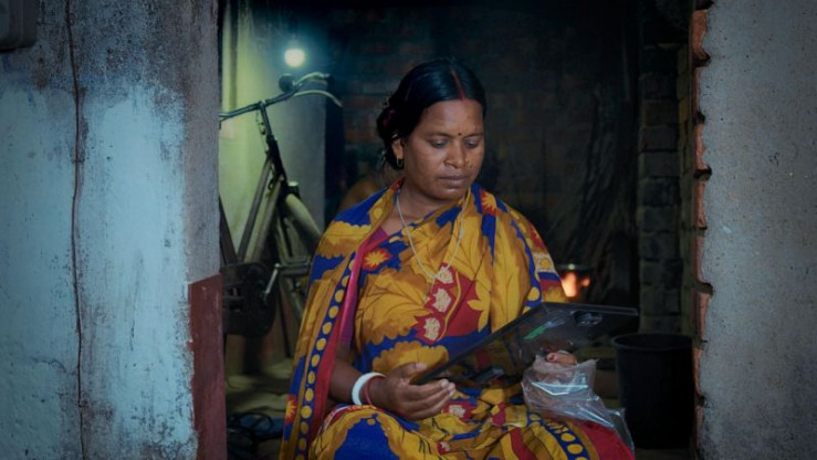 Parboti Hernnoud betrachtet zuhause ein Foto