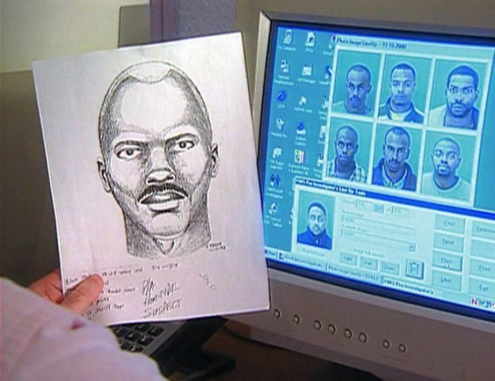 Die gerufene Polizei verhaftet kurz darauf einen Verdächtigen, doch den Mord kann man ihm nicht nachweisen. Die Bilder der Überwachungskamera zeigen, dass ein schwarzer Mann den Überfall verübt hat, aber sein Gesicht ist nicht klar erkennbar. Man kann jedoch in etwa sein Aussehen rekonstruieren und erstellt ein Phantombild. Unzählige Hinweise gehen daraufhin bei der Polizei ein, doch alle führen in eine Sackgasse.