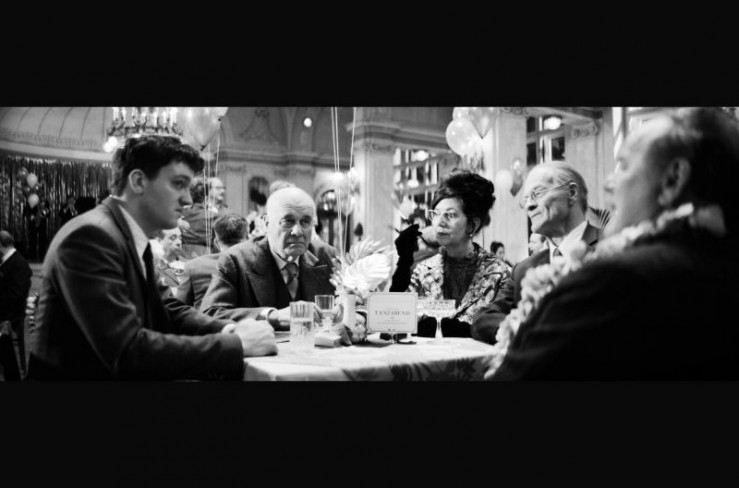 Johannes Leinert (Jan Bülow) auf der Terrasse des Hotel Esplanade. 1962 reist er mit seinem Doktorvater Dr. Strathen zu einem Quantenphysik-Kongress in die Schweizer Alpen, doch der Redner, von dem eine Theorie von Allem erwartet wird, verspätet sich.