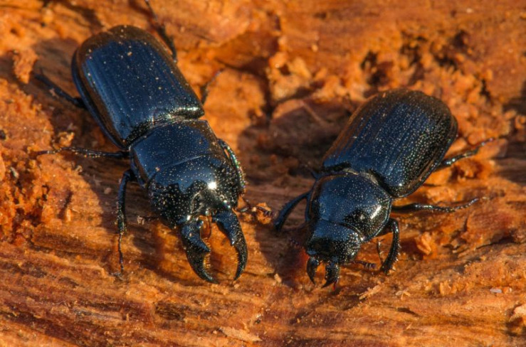 Für die Entwicklung seiner Larven braucht der Rindenschröter rotfaules Holz, zum Beispiel von Fichten oder Tannen.