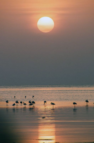 Mehr als 40.000 Flamingos haben sich auf der Halbinsel Barr Al Hikman zusammengefunden.