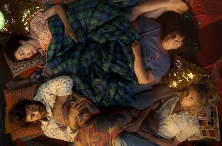 Loulou (Louise Massin, 2.v.l.) zu Hause bei ihrem Ex-Mann ? ihre drei Freunde Marie (Marie Lelong, li.), Alice (Alice Vial, 2.v.r.) und Max (Guillaume Pottier, re.) begleiten sie.