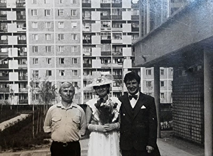 Anatoli Dyatlow (hi.), der den Sicherheitstest am Abend des Unfalls überwachte, und Oleksij Polywoda (vo.), Leiter der Einheit 3, im Kernkraftwerk Tschernobyl im November 1985. Sie und andere Mitarbeiter wurden für die Katastrophe verantwortlich gemacht.