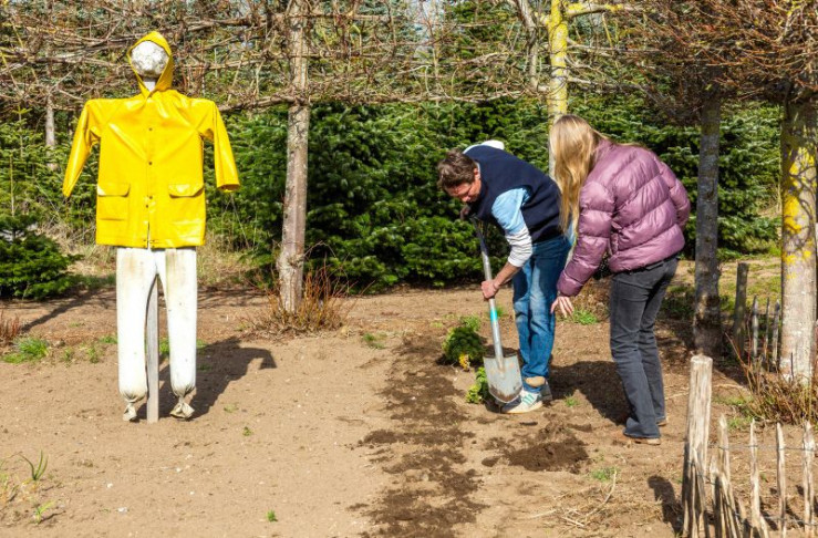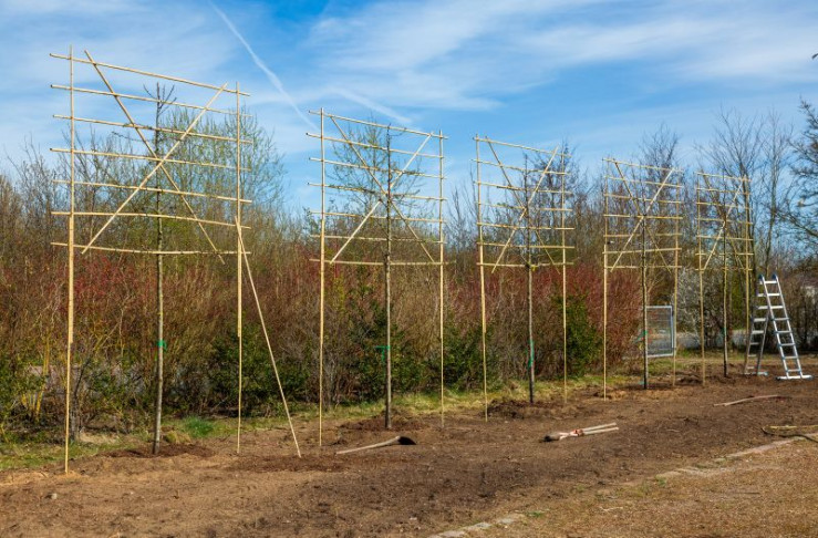 Spalierbäume als Sichtschutz - in ein paar Jahren steht hier eine grüne Wand.