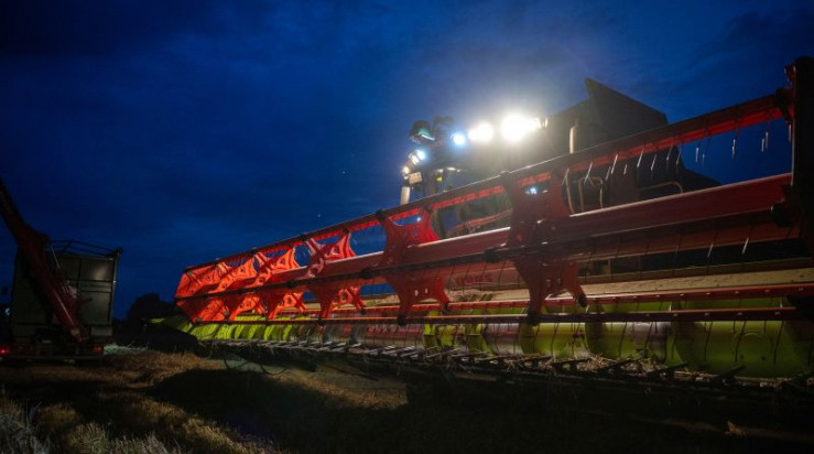 Mit dem Mähdrescher nutzt Landwirt Philipp Hattendorf die Nacht, um möglichst viel Weizen zu ernten.