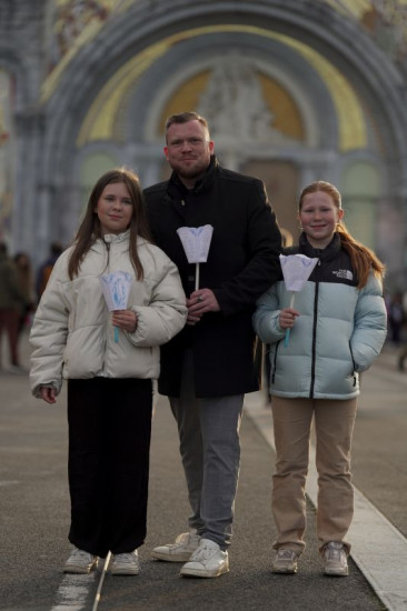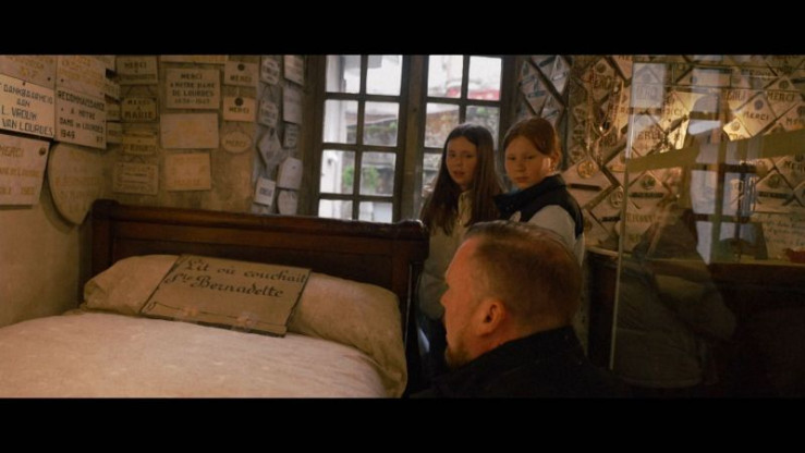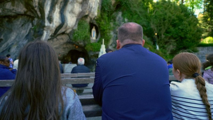 Dominic glaubt an die Erscheinungen der Gottesmutter in Lourdes. Seine Töchter stehen irgendwo dazwischen: Sie sind offen für das, was sie an dem Marienerscheinungsort erleben werden, aber manchmal auch peinlich berührt, wenn ihr Papa zu emotional wird. Die Sommerurlaube verbringt die Familie gern im Trainingslager von Schalke 04. Die Liebe zum Verein und die Liebe zur Gottesmutter, sie sind nicht gleichzusetzen, sagt Dominic, aber beides könne einem Leben Sinn geben. Dominic will seinen Töchtern zeigen, warum Lourdes ihn seit seiner Kindheit nicht loslässt.