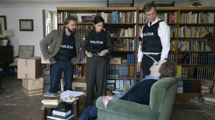 Was bedeutet die Inszenierung? V. li. n. re.: Inspektor Esteves (Daniel Christensen), Subcomissįria Rosado (Eva Meckbach) und Europol-Kommissar Leander Lost (Jan Krauter) untersuchen die Leiche.