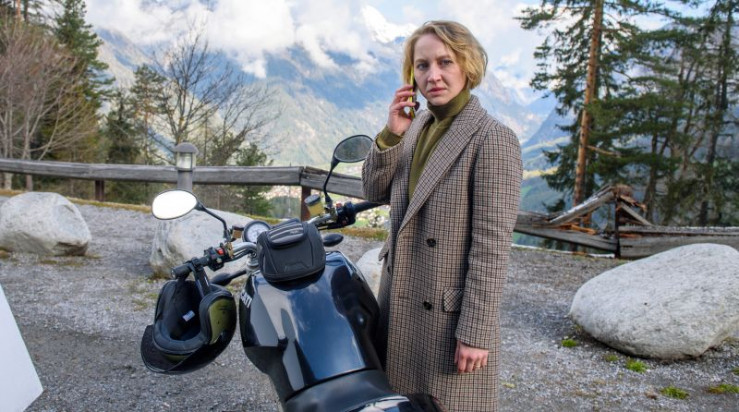 Blum (Anna Maria Mühe) findet in der alten Ducati ihres Mannes ein Handy.