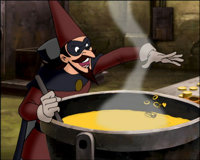 Er muss ebenfalls dem Buch entschlüpft sein. Weil der Gauner auf alles Goldene scharf ist, stellen Bibi und Florian ihm eine Falle bei der goldenen Ritterrüstung von Ritter Rudibert. Doch der Unhold entkommt mit der Rüstung. Und in dieser steckt Florian.