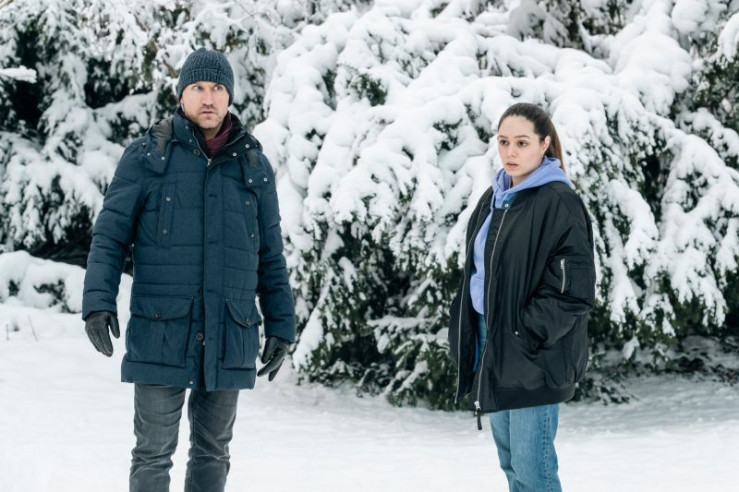 Das Auto der Kommissare Amira Mahdi (Aylin Ravanyar, l.) und Jonas Fischer (Lukas Piloty, r.) ist festgefahren, sodass sie in finsterer Nacht die Verfolgung zu Fuß aufnehmen müssen. Können sie der Entführung einen Schritt näherkommen?