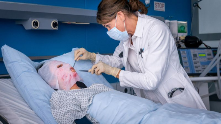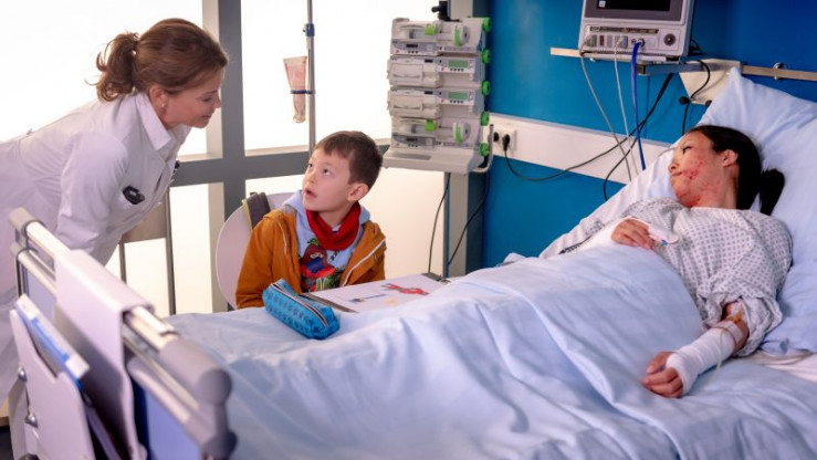 Melanie (Sanna Englund) kümmert sich um Bao (Connor Liam Kristott), dessen Mutter wegen schweren Verbrühungen ins Krankenhaus musste.