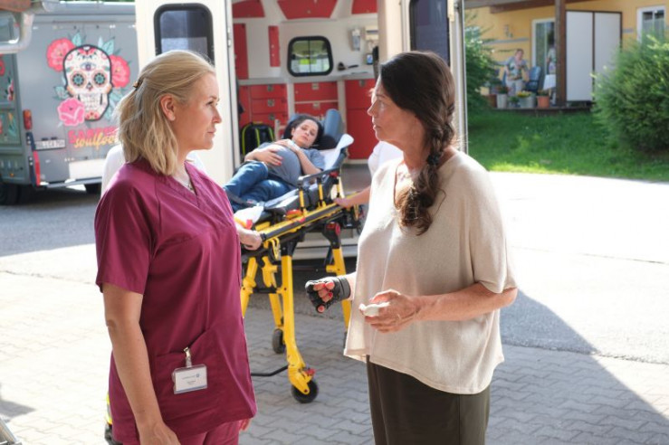 Lena Lorenz (Judith Hoersch, r.) redet Sabrina Kettler (Sarah Alles-Shahkarami, l.) ins Gewissen, denn ohne Krankenversicherung darf sie in der Klinik nicht entbinden.