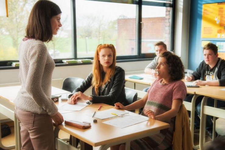 Greta (Janina Fautz) hat bei Melody (Matilda März) und Daria (Amina Merai) keinen guten Stand. Lilith (Emma Bading) beobachtet das aus dem Hintergrund.
