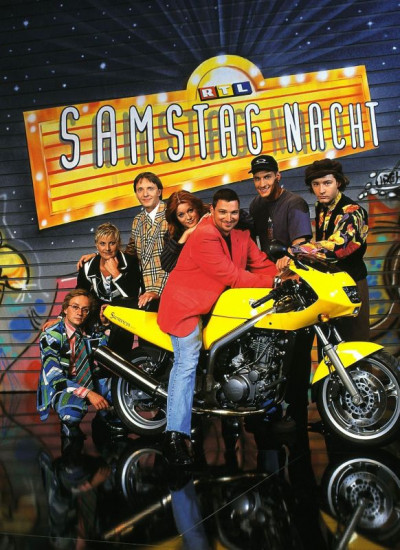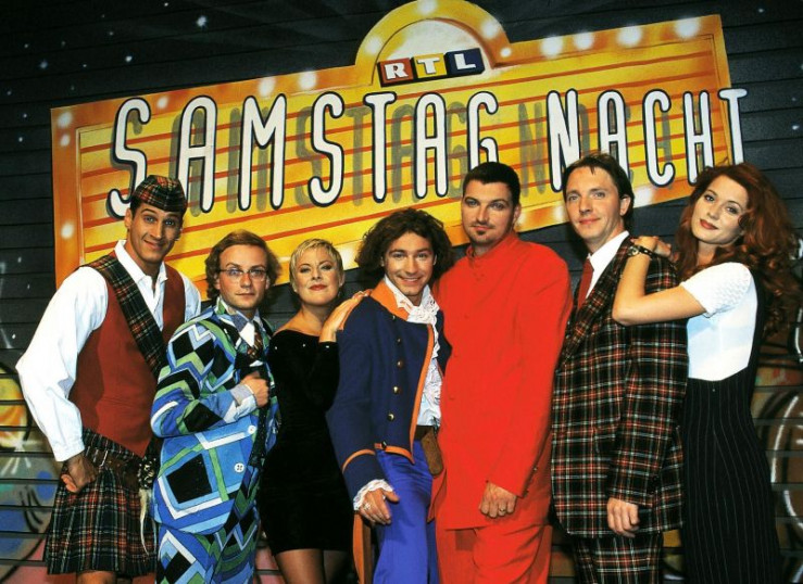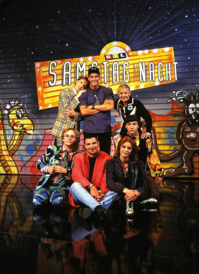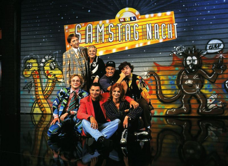 "RTL Samstag Nacht" mit (v.l.) Olli Dittrich, Tanja Schumann, Mirco Nontschew, Tommy Krappweis, Wigald Boning, Stefan Jürgens und Esther Schweins