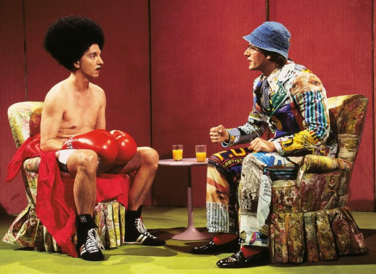 Olli Dittrich(li.) als Meister Propper wird von Wigald Boning in der Sketchnummer " Zwei Stühle eine Meinung" interviewt.