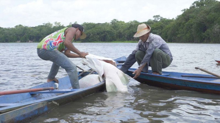 Wenn im Oktober die Schonzeit vorbei ist, ziehen die brasilianischen Fischer am oberen Amazonas los. In wackeligen Kanus und mit Harpunen machen sie Jagd auf den größten Süßwasserfisch Südamerikas: den Arapaima, in Brasilien Pirarucú genannt.