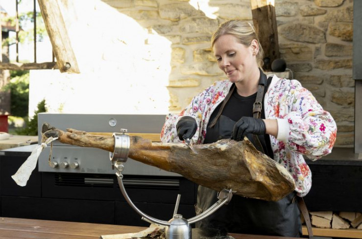 Die erste Gastgeberin lädt ins Münsterland ein. "Aus den Pumps in die Gummistiefel", so beschreibt Annika Ahlers-Vincke ihren Werdegang. Der Bauernhof ihrer Großeltern weckte im Stadtkind Annika das Interesse am Landleben. Nach der Ausbildung zur Landwirtin wurde sie zu einer der ersten Influencerinnen der Landwirtschaft. In Everswinkel führt sie gemeinsam mit ihrem Mann Christian Vincke dessen elterlichen Betrieb mit rund 400 Ibérico-Schweinen, die eigentlich in Spanien heimisch sind. Das Fleisch der schwarzen Tiere gilt wegen der Fetteinlagerung im Fleisch als Delikatesse. In Spanien hat die 30-Jährige eine Fortbildung als "Cortadora" absolviert, um zu lernen, wie man den Schinken auf klassische spanische Art schneidet. In ihrem Menü spielen die Ibéricos die kulinarische Hauptrolle: Als Gruß aus der Küche gibt es hauchdünn geschnittenen Schinken, Schmalz und Chorizo mit Sauerteigbrot. Zum Hauptgang flambiert sie Presa, ein besonderes Nackenstück, und serviert es mit Kartoffelstampf, Rote Bete-Carpaccio und Orangen-Möhren. Das Dessert rundet das Menü ab: Schoko-Küchlein mit karamellisiertem Ibérico-Speck.
