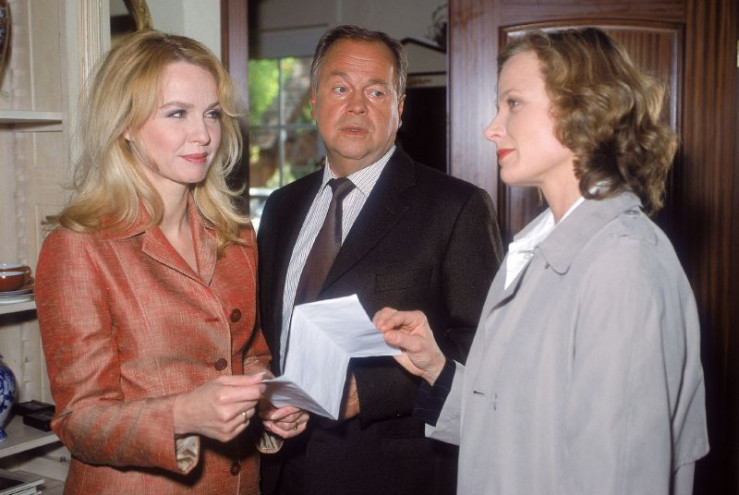 Kommissar Kehler (Wolfgang Bathke) und Staatsanwältin Clausen (Brigitte Beyerler, r.) zeigen Frau Behrend (Claudia Messner) den Haftbefehl für ihren Mann.