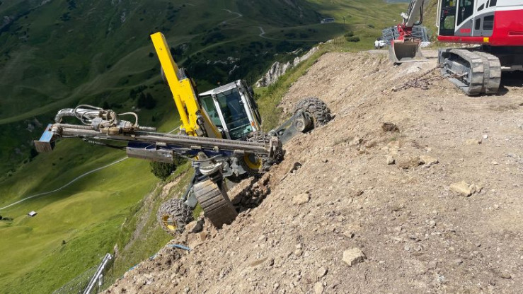 Der Schreitbagger kann an steilen Hängen operieren.
