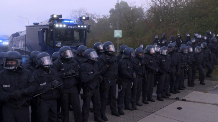 Zwei Hundertschaften trainieren eine UDA-Lage, eine unfriedliche demonstrative Aktion.