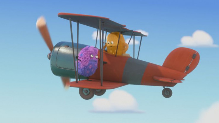 Kiwi und Strit sitzen auf dem Flugzeug und sind startbereit.