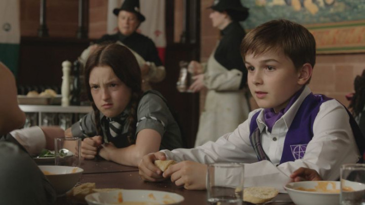 Allgemein 1 Mildred (Bella Ramsey, M.) und ihre Mitschülerinnen (v.l.n.r.) Edith (Tamara Smart), Maude (Megan Hughes), Mildred (Bella Ramsey) und Felicitas (Dagny Rollins) können es nicht glauben. Der Ostflügel der Akademie droht einzustürzen. Höchstwahrscheinlich hat Mildreds Notlandung an der Fahnenstange für die Risse im Mauerwerk gesorgt.