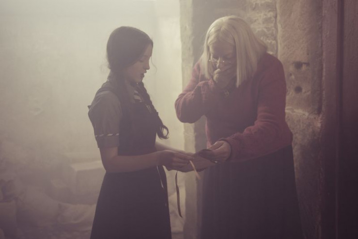 Durch den Nebel der Zeit konnte Mildred (Bella Ramsey, l.) in die Akademie der Vergangenheit gelangen. Dort hat sie etwas gefunden, das sehr wichtig für die Direktorin Ada Graustein (Clare Higgins, r.) ist.