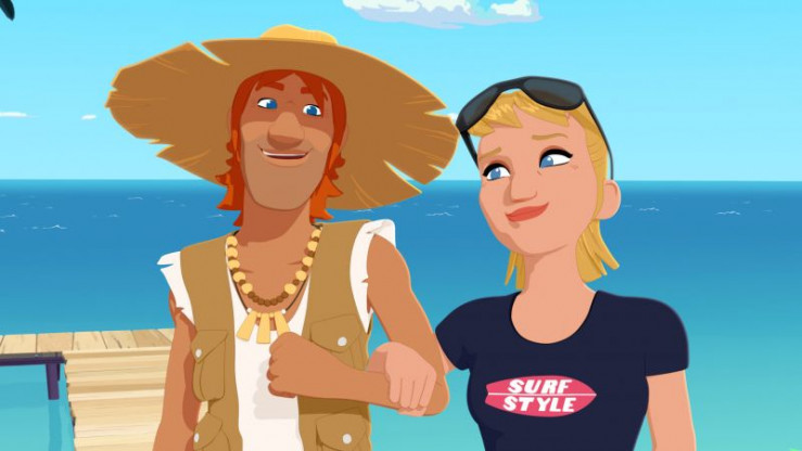 Jacks (l.) alte Freundin Joanna (r.) ist zu Besuch auf Maotou. Sie arbeitet für ein Surfer-Magazin und ist auf der Suche nach tollen Bildern und einem Surf-Champion für das Titelbild der nächsten Ausgabe. © ZDF/Media Valley/Marzipan Films - Honorarfreie Verwendung gemäß AGB im redaktionellen Zusammenhang mit genannter Sendung bei Nennung "Bild: ZDF/Media Valley/Marzipan Films" inklusive Social Media. Einschließlich Social Media© ZDF/Media Valley/Marzipan Films - Honorarfreie Verwendung gemäß AGB im redaktionellen Zusammenhang mit genannter Sendung bei Nennung "Bild: ZDF/Media Valley/Marzipan Films" inklusive Social Media. Einschließlich Social Media