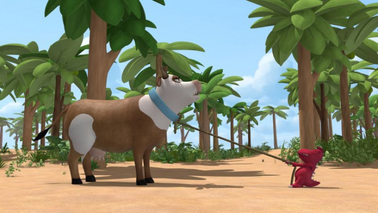 Großer Tag für Oskar: er darf zum ersten Mal beim jährlichen Viehtrieb der Fressdrachen mitmachen. Kokosnuss und Matilda passen solange auf Oskars Kälbchen Steaky auf, aber Steaky reißt aus.