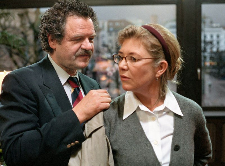 Elvira Kupfer (Jutta Speidel, l.) und ihr Kanzleikollege Dr. Stefan Milloschinsky (Gunter Berger) sind einander spinnefeind. Doch nun müssen sie für Julia (Julia Brendler) ein liebendes Ehepaar spielen. Man kommt auf den Geschmack.