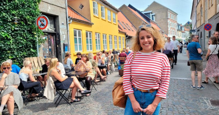 Moderatorin Simin Sadeghi im Latiner Viertel, der Altstadt von Aarhus.