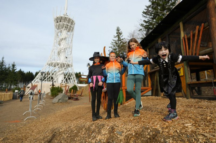 Kleine "Hexen" erobern die neue Erlebniswelt Hex mit dem weltgrößten Hexenbesen in Rothesütte im Harz