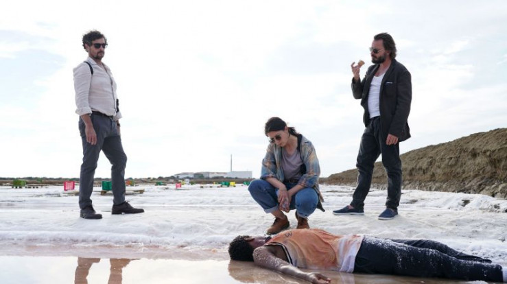 Leander Lost (Jan Krauter) wurde angeschossen. Raul Da Silva (Adriano Carvalho, li.), Graciana Rosado (Eva Meckbach) und Carlos Esteves (Daniel Christensen) versuchen zu helfen.