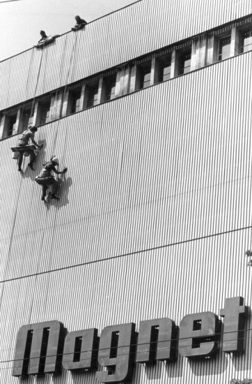 Reinigung der Metallfassade des Kaufhauses Magnet
