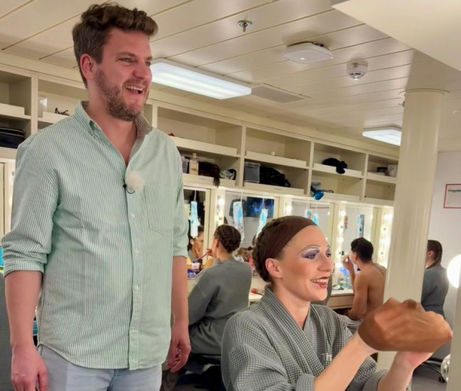 Reporter Ralf Herrmann mit Tänzerin Anna