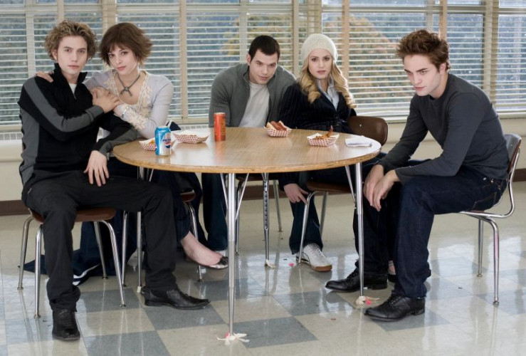 Die Cullens, Jasper (Jackson Rathbone, li.), Alice (Ashley Greene), Emmett (Kellan Lutz), Rosalie (Nikki Reed) und Edward (Robert Pattinson)