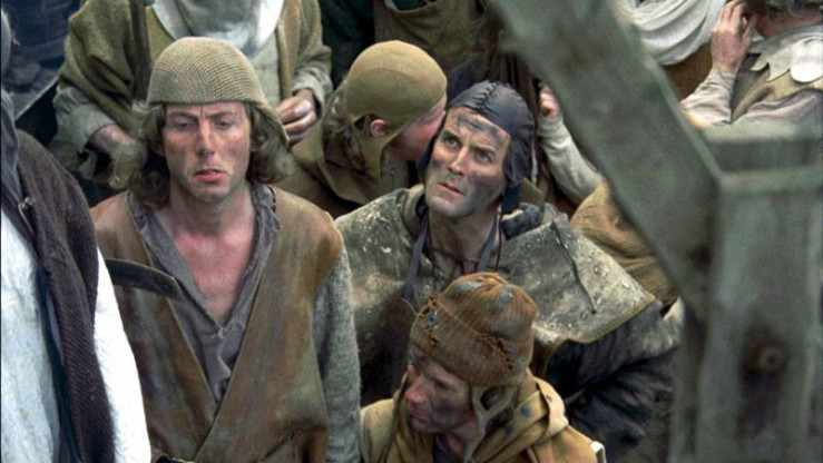 Der Mob (u.a. Eric Idle, li.; John Cleese, re.) ist aufgebracht