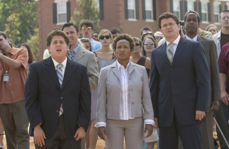 Evans Kollegen Eugene (Jonah Hill, li.), Rita (Wanda Sykes) und Marty (John Michael Higgins) aus dem Kongress können es nicht fassen, als sie die von Evan erbaute Arche sehen...