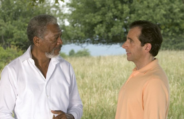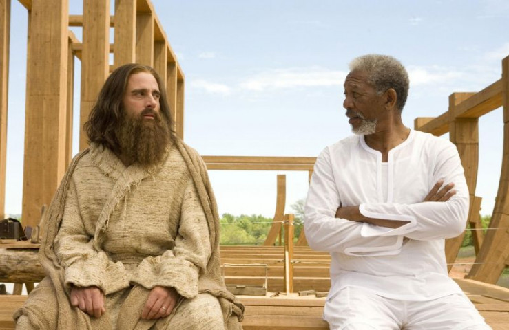 Gott (Morgan Freeman, li.) hat einen wichtigen Auftrag an einen Erdenmenschen zu vergeben: Evan Baxter (Steve Carell) soll das größte Rettungsschiff der Welt errichten - die Arche.