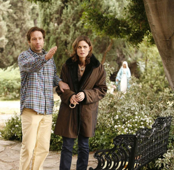 Regisseur David Duchovny während den Dreharbeiten mit Hauptdarstellerin Emily Deschanel.