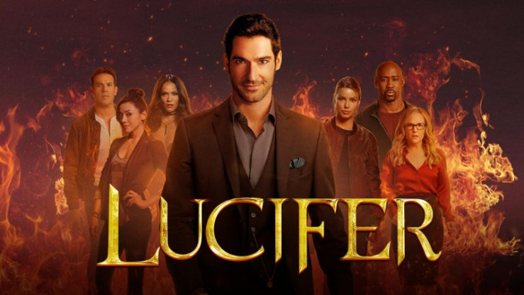 (v.l.) Amenadiel (D.B. Woodside), Maze (Lesley-Ann Brandt), Lucifer (Tom Ellis), Chloe Dancer (Lauren German), Dan (Kevin Alejandro), Linda Martin, Rachael Harris)