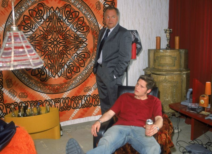Horst Steiner (Michael Lott, li.) wurde von Peter Fischer im Rahmen eines betrügerischen Immobiliengeschäftes um sein ganzes Geld geprellt. Damit hätte er ein Mordmotiv gehabt. Als Kommissar Bonhoff (Wolfgang Krewe) ihn zu seinem Verhältnis zu Fischer befragt, stellt er sich ahnungslos.