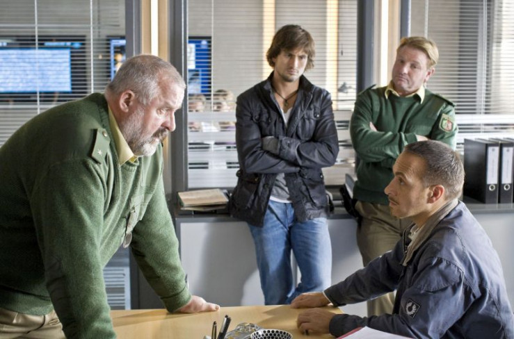 Die neue Chefin entzieht Ben (Tom Beck, Mi.) und Semir (Erdogan Atalay, re.) wegen Befangenheit den Fall und lässt Susanne (Daniela Wutte) durch die Kripobeamten Kempinski (Sascha Nathan, li.) und Stein (Jan Gregor Kremp) festnehmen.