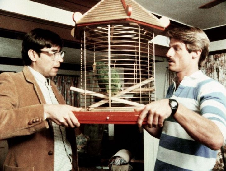 Die Detektive Murray (Thom Bray, li.) und Cody (Perry King) sollen den Papagei eines Klienten betreuen, der angeblich vom CIA verfolgt wird. +++ Die Verwendung des sendungsbezogenen Materials ist nur mit dem Hinweis und Verlinkung auf RTL+ gestattet. +++