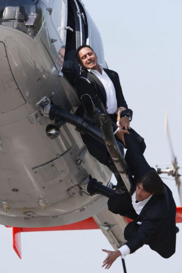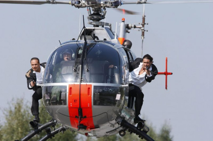 Semir (Erdogan Atalay, l.) und Ben (Tom Beck) versuchen mit dem Helikopter Bens gekidnappte Schwester aus dem Wagen ihres Entführers zu retten...